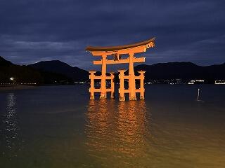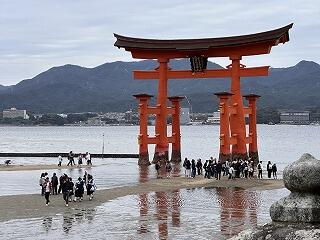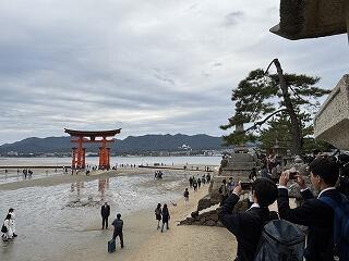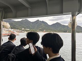 ○見学旅行1日目は世界遺産・日本三景の厳島(宮島)へ行ってきました。新月だったため、昼間は鳥居まで歩いて行ける貴重な日でした。夜はライトアップされた鳥居が海に浮いているようで美しかったです。もみじ饅頭もたくさん買いました! 夕食の陶板焼きはとても美味しかったです。